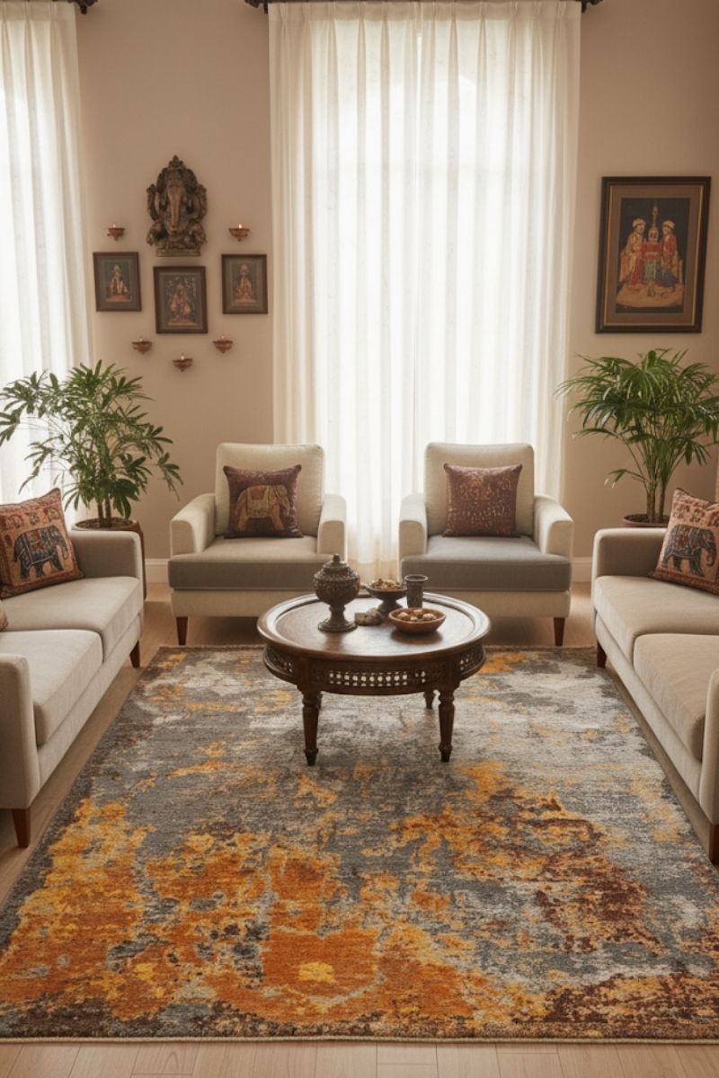 4. Loose ends of the fibre may stick out under severe wear and tear. Clip these ends, Pulling threads or fibre may lead to severe damage to the rug.