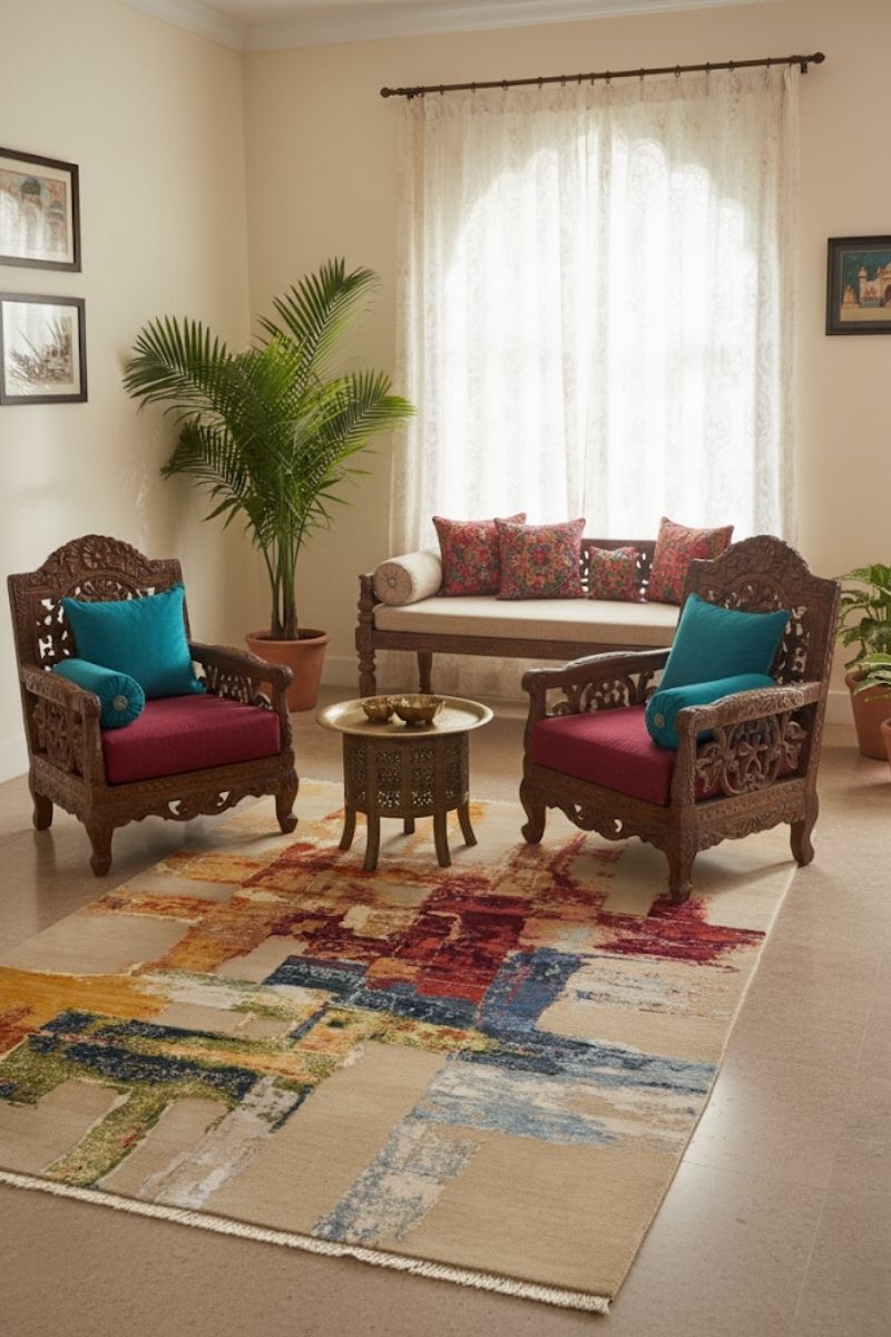 4. Loose ends of the fibre may stick out under severe wear and tear. Clip these ends, Pulling threads or fibre may lead to severe damage to the rug.